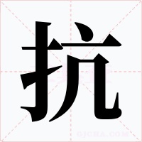 又如:抗木(旧时所用的葬具。在棺木之上覆盖一席,用以防御尘土);抗力(抵抗力);抗犯(抵抗与进犯);抗玩(玩忽抗命);抗质(谓劫持人质以相抗);抗矫(矫情抗俗,高蹈)