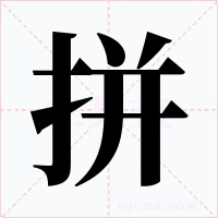 “拼” 字共有 9 画,拼音:pīn,注音:ㄆㄧㄣ,部首:扌,笔画数:9 画,字体结构:左右结构,五行:水,五笔:RUAH,Unicode编码:U+62FC,郑码:DUE,仓颉:QTT,“拼”字笔顺为:一丨一丶ノ一一ノ丨