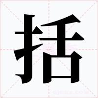 “括” 字共有 9 画,拼音:kuò,注音:ㄎㄨㄛˋ|ㄍㄨㄚ,部首:扌,笔画数:9 画,字体结构:左右结构,五行:木,五笔:RTDG,Unicode编码:U+62EC,郑码:DMI,仓颉:QHJR,“括”字笔顺为:一丨一ノ一丨丨フ一
