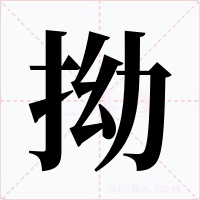 (形声。从手,幼声。ǎo本义:用手折断)固执〖obstinate;pigheaded;stubborn〗。如:拗逆(违逆);拗别(不顺从);拗彆(不顺从);执拗;脾气很拗;拗性(性情固执);拗执(固执倔强);拗强(固执倔强);拗木枕(强项。比喻性格倔强而不肯低头)