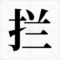 (形声。从手,阑(lán)声。本义:阻挡;遮拦)