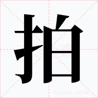 又如:拍浮(游泳);拍肩(轻拍别人的肩膀。表示友好或爱护);拍惜(轻拍爱怜);拍张(伸展肢体拍打);拍球;拍台拍凳(拍桌子打板凳;歇斯底里地大发脾气)