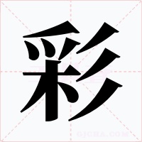 (形声。从彡(shān),采声。从“彡”表示与图画、文饰相关。本义:文采,文章才华)