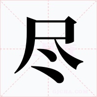 到…底;到…尽头〖all;whole;totheend〗。如:尽岁(全年;整年);尽世(一辈子);尽日(一整天,一天到晚);尽人(所有的人);尽物(所有之物);尽止(尽头;止境);尽头路(末路;绝路);尽情话(绝情话;无情话);尽古(终古);尽场儿(到头来;自始至终)。又指农历月终。古以农历月终三十日为大尽,二十九日为小尽