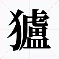 “獹” 字共有 19 画,拼音:lú,注音:ㄌㄨˊ,部首:犭,笔画数:19 画,字体结构:左右结构,五行:火,五笔:QTHL,Unicode编码:U+7379,郑码:QMKL,仓颉:KHYPT,“獹”字笔顺为:ノフノ丨一フノ一フ丨フ一丨一丨フ丨丨一