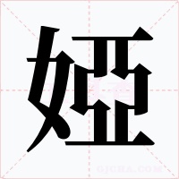 “婭” 字共有 11 画,拼音:yà,注音:ㄧㄚˋ,部首:女,笔画数:11 画,字体结构:左右结构,五行:金,五笔:VGHG,Unicode编码:U+5A6D,郑码:ZMBZ,仓颉:VMLM,“婭”字笔顺为:フノ一一丨一フフ一丨一