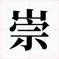 “崇” 字共有 11 画,拼音:chóng,注音:ㄔㄨㄥˊ,部首:山,笔画数:11 画,字体结构:上下结构,五行:金,五笔:MPFI,Unicode编码:U+5D07,郑码:LLWB,仓颉:UJMF,“崇”字笔顺为:丨フ丨丶丶フ一一丨ノ丶