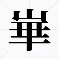 “崋” 字共有 10 画,拼音:huà,注音:ㄏㄨㄚˋ,部首:山,笔画数:10 画,字体结构:上下结构,五行:土,五笔:MGAF,Unicode编码:U+5D0B,郑码:LLEB,仓颉:UMTJ,“崋”字笔顺为:丨フ丨一一丨丨一一丨