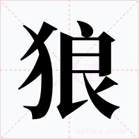 犬属的任何一种大型犬形哺乳动物,狡猾、贪婪,对牛、羊和猎兽造成极大损害,有时袭击人类,尤其在成群的时候。如:狼卜(相传狼必先卜方向,然后觅食);狼卜食(传说狼觅食,先卜方向);狼子(狼崽子。比喻凶暴狠毒的人);狼毫(狼毛。或指用鼬鼠皮制成的毛笔);狼犬(狼和犬。亦称“狼狗”。一种外形如狼的狗。性凶猛,嗅觉灵敏);狼牙(狼的牙齿);狼虎(狼与虎;比喻凶恶残暴的人)