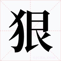 通“很”。凶狠;凶残〖cruel;ferocious〗。如:狠戾(恶毒凶暴);狠切(凶狠,严厉);狠劣(凶狠暴戾);狠虫(骂人的话。凶狠的人)