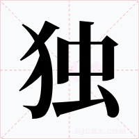 独自〖alone;only;allbyoneself;singly〗。如:独有(独自安慰);独罟(独吞;独占。罟:网的总称);独擅(独揽;独占。擅:拥有;据有);独吃自疴(喻指顾己不顾人,一人独吞。疴:即“屙”,拉屎撒尿);独乐(独自欣赏音乐);独觉(一人独睡);独吟(独自吟诗);独言(一人自言);独笑(独自喜笑;自乐);独专(单独占有);独怀(独自思念);独写(独自抒发);独抚(独自安慰);独说(独自解说);独用(单独使用)