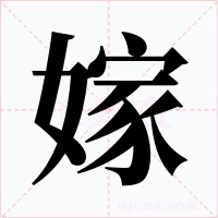 “嫁” 字共有 13 画,拼音:jià,注音:ㄐㄧㄚˋ,部首:女,笔画数:13 画,字体结构:左右结构,五行:木,五笔:VPEY,Unicode编码:U+5AC1,郑码:ZMWG,仓颉:VJMO,“嫁”字笔顺为:フノ一丶丶フ一ノフノノノ丶