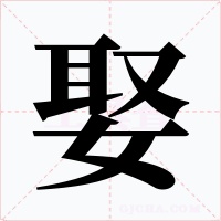 (会意兼形声。从女,从取,取亦声。本义:男子结婚。把女子接过来成亲)