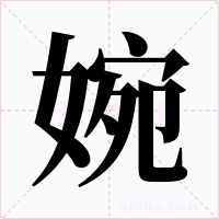 又如:婉软(柔和的样子);婉艳(柔顺华美);婉嫕(婉静。温顺娴静);婉容(和顺的仪容);婉悦(恭顺和悦);婉弱(和顺谦恭);婉柔(温顺柔弱)