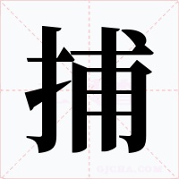 捉,逮:捕捉。捕获。捕杀。巡捕。缉捕。捕风捉影。