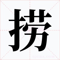 (形声。从手,劳声。本义:从水中寻取东西)